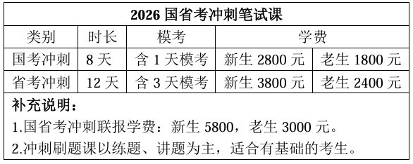 为满足想尽快上岸的考生对靠谱且高质量公考笔试冲刺课的需求,从正公考2026国考、江苏省考笔试冲刺刷题课将于11月5日开课,详情如下:全程20天,国省考冲刺课可单...